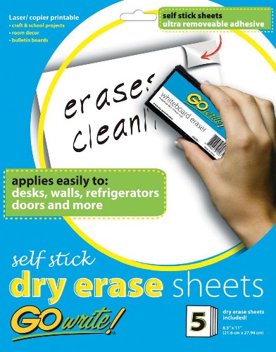 Gowrite Dry Erase Sheets, 8.5 X 11 Inches, White, 5 Sheets (AS8511)
